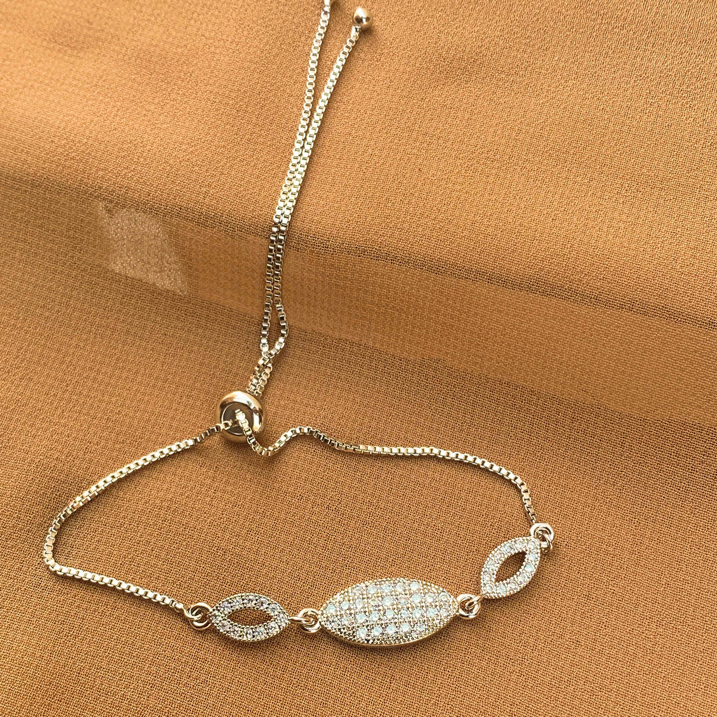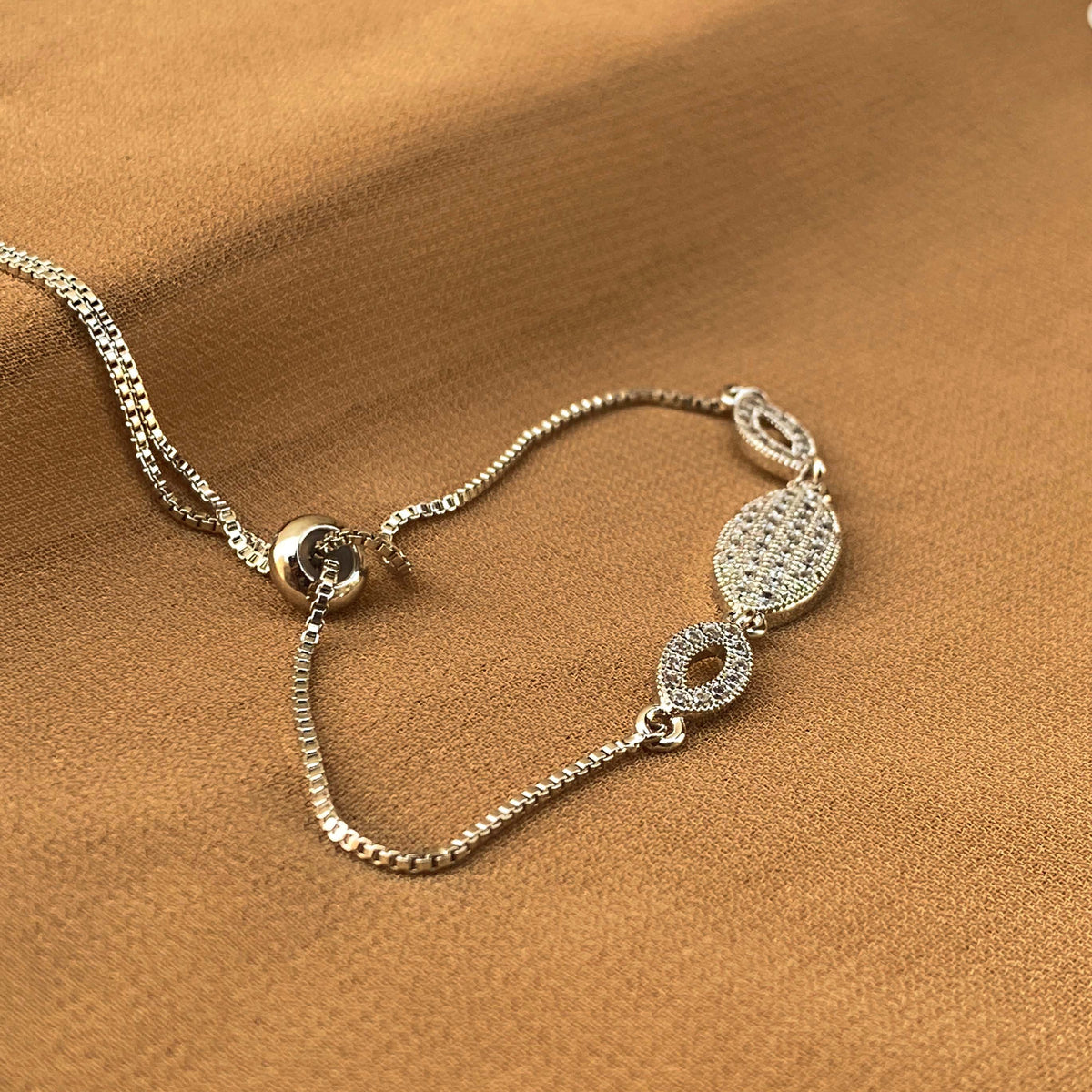 This stunning Diamond Pave Link Bracelet features a delicate yet elegant design with pave-set diamonds nestled within oval and marquise links. With its adjustable chain and luxurious sparkle, it's the perfect accessory to complement both casual and formal attire.