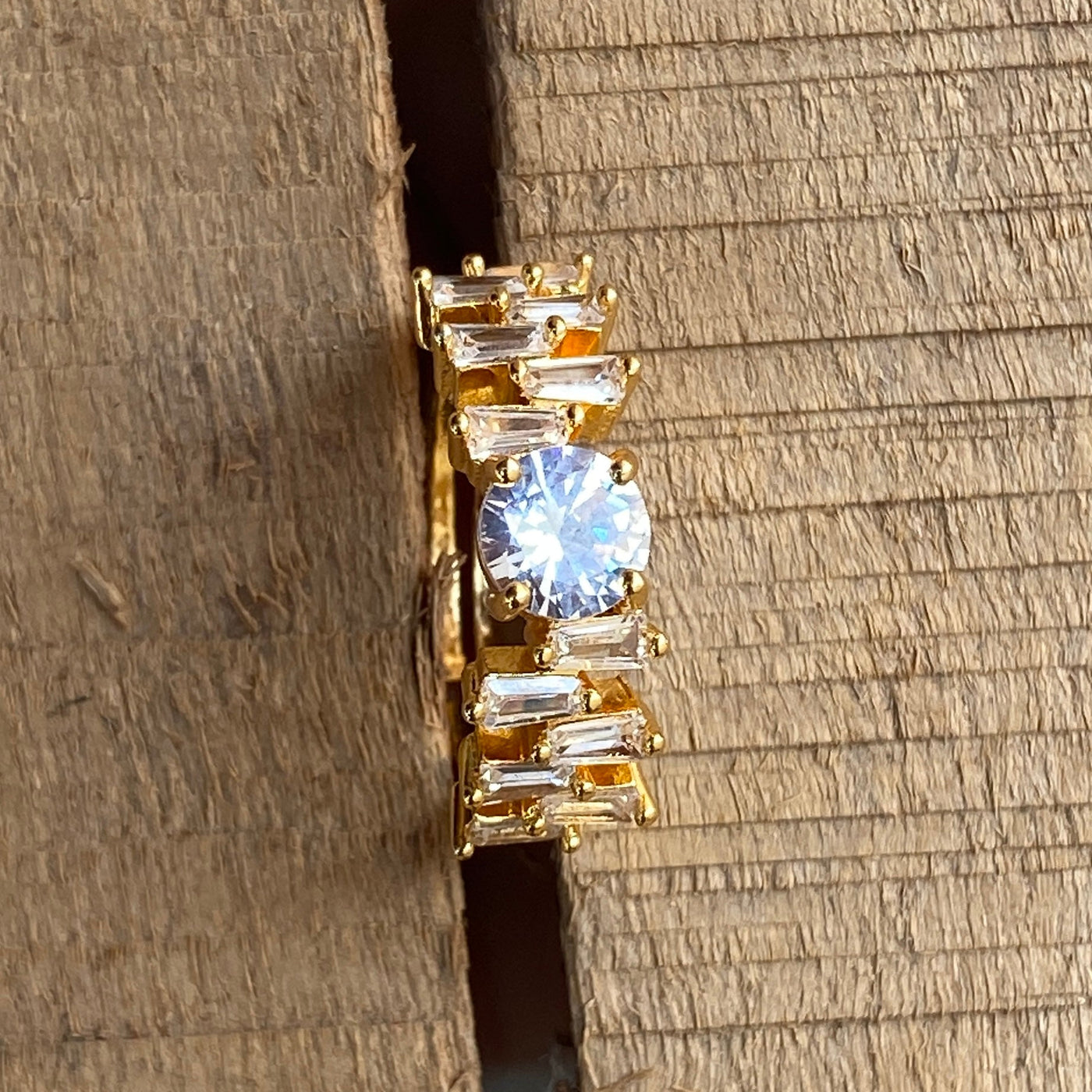 The Radiant Princess Cut Halo Ring is an elegant piece designed to capture attention with its striking beauty. At its center is a brilliant princess-cut stone, surrounded by a halo of baguette-cut stones that radiate brilliance. The smooth gold band adds an extra layer of sophistication, making this piece perfect for those who love modern elegance with a touch of timeless charm.
